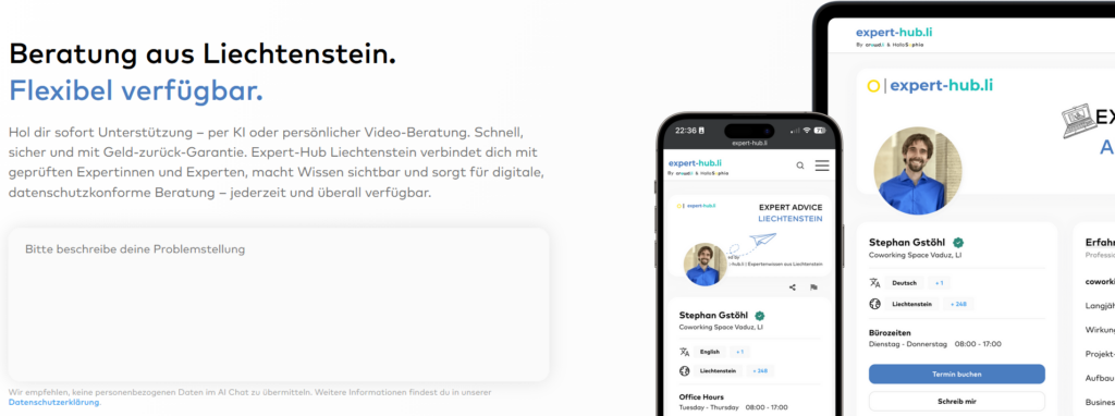 expert-hub.liDie Online-Beratungsplattform für Liechtenstein